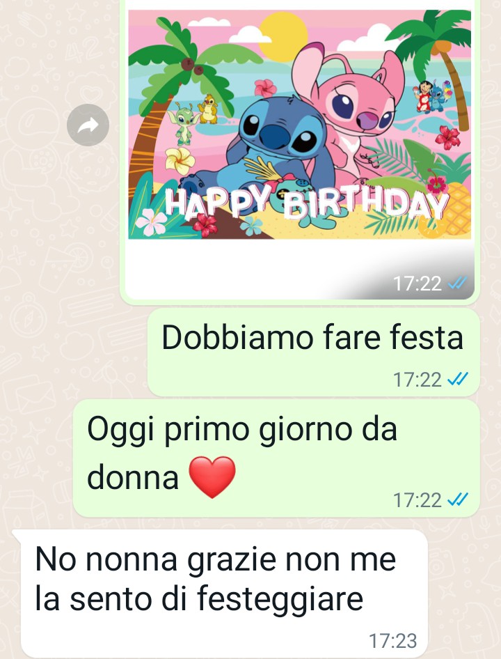 Mia nipote invece ha sempre quella faccia triste come se il mondo ce la con lei. Guardate cosa mi ha detto e poi ditemi che o ragione. Nonna coraggio”