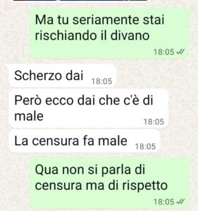 Così ho girato il link a mio marito, pensando che l’avrebbe firmata al volo. E invece no. Ha iniziato a dire che “non era niente di grave”, che anzi era megliio….  che tanto è arte, o una cosa del genere.. e bla bla. Io cercavo di spiegargli che non era questione di nudo, ma di rispetto, di linguaggio, di contesto. Ma lui, più gli parlavo, più faceva il cretinello, scherzando su Jeremy Allen White…. A quel punto ho dovuto tirare fuori il mio asso nella manica, l’argomento più convincente e saggio di tutti… ecco com’è finita…”