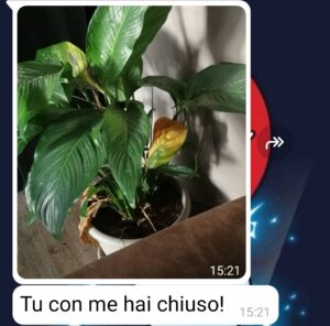 Tutto è iniziato da una cosa piccola stavolta, una pianta che abbiamo preso quando ci siamo trasferiti insieme. Era un simbolo per noi, di nuovo inizio. E lei ha iniziato a pensare che quando qualcosa non va la pianta lo sente. Dice che assorbe l’energia delle relazioni e “si ammala quando l’amore cambia”. E quindi eccoci qua, con lei che nota le foglie ingiallite e mi accusa di non so cosa.