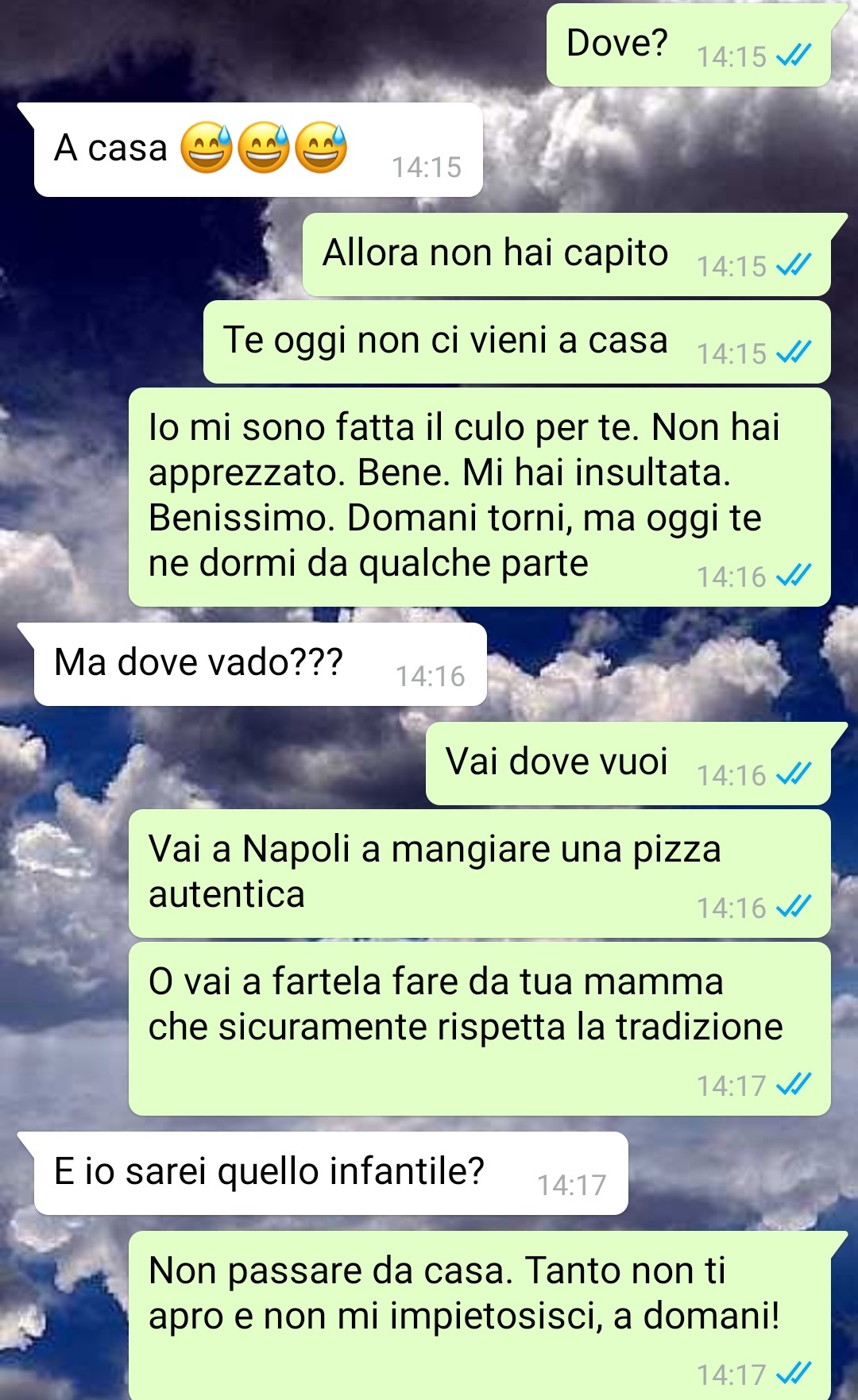 Leggi le ultime storie Famiglia allargata Birra in lavastoviglie Lasagne vegane Lo zaino bucato La mia regina Il mio fidanzato Una nonna Mai votato Il tradimento svelato Il problema di papà Il vestito da sposo Non adesso La paziente bisognosa Libertà o maternità Rimborso speciale Suoceri e bugie Sei bellissima Il nostro primo appuntamento Incinta sotto casa Il vecchio amministratore di condominio