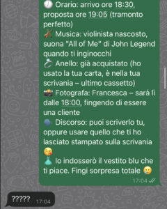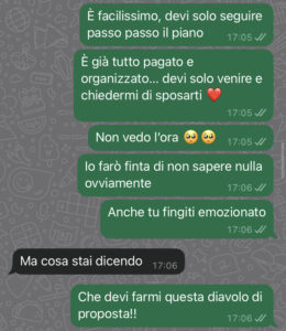 Non entrerò nei dettagli perché ve lo lascio scoprire nella chat, ma diciamo solo che ho provato a forzare un momento magico. Lo ammetto. Ma non mi vergogno di aver sognato in grande un momento speciale. L’ho pianificato, sognato, curato in ogni minimo particolare.