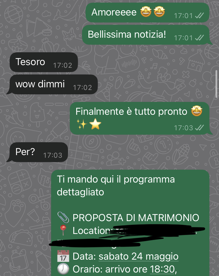 Non entrerò nei dettagli perché ve lo lascio scoprire nella chat, ma diciamo solo che ho provato a forzare un momento magico. Lo ammetto. Ma non mi vergogno di aver sognato in grande un momento speciale. L’ho pianificato, sognato, curato in ogni minimo particolare.