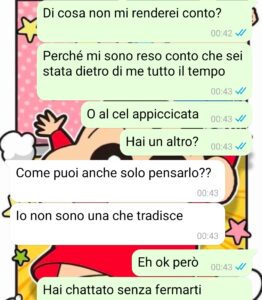 “Salve a tutti voi carissimi amici di Spunteblu e ciao a chi mi leggerà tra i lettori, che come me si ritrova a dare un’occhiatina alle chat altrui, ma questa volta io mi trovo dall’altra parte della barricata. Questo perché a quanto pare io sarei una red flag in amore. Non volevo anticiparvi questo piccolo particolare, ma quello che dovete sapere è che mi chiamo Alessandro e sono uno di 30 anni e penso di essere un tipo normale. La ragazza con la quale mi sono frequentato non so nemmeno come abbia fatto a piacermi, ma sono stato suo amico per non so quanto tempo, tipo un anno forse, e poi qualcosa tra noi è finalmente cambiato. Io mi ero dichiarato già dopo i primi mesi di conoscenza, ma lei aveva detto che si era appena lasciata e non voleva iniziare qualcosa di nuovo, poi dopo vario tempo, finalmente lei mi considera, c’è stato un bacio e tutto sembrava andare a gonfie vele. Usciamo una sera insieme e lei dice di stare male, la riaccompagno a casa e lei poi, parlandomi, se ne esce con una cosa assurda.”