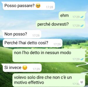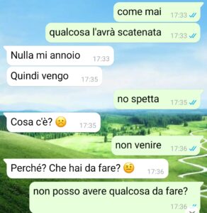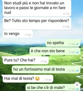 “Salve a tutti voi, io sono Giuseppe e mi rendo conto che non mi sono comportato come la persona più matura del mondo. Ma so anche che in questa storia non ci sono buoni o cattivi, non ci sono persone che si comportano bene o no e non c’è davvero chi ha ragione e chi ha torto, ma solo punti di vista. Forse io e la mia ragazza non eravamo fatti per stare insieme, abbiamo solo due modi diversi di vivere una relazione, ma non saprei dire. No, effettivamente se devo ragionarci un pochettino, direi che ho decisamente più ragione io di lei, ma più che altro perché il suo atteggiamento lo trovo assurdo e nessuno lo troverebbe normale, per questo mi sono comportato in questo modo e ho fatto ciò che ho fatto. Comunque io sono un ragazzo laureato da poco e ancora devo riuscire a trovare un impiego, la mia ragazza, Annamaria, con la quale sto da quasi un anno, anche lei non lavora e per tutto questo quasi anno è passata da me per stare insieme. Solo che di recente è venuta fuori una triste verità, per lei almeno.”