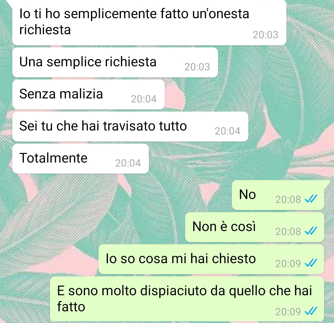 Leggi le ultime storie La storia di Leandro Tu non vieni Fidati di me Capodanno a Londra Il problema della richiesta Stipendi a confronto Per magia Prenotarsi A te e famiglia Fidanzata Sentenza L’amica ghostata Da amici Il cuculo Il Natale Nessuna obiezione Il colloquio conoscitivo Vuoi sposarmi? L’astronauta Check regali