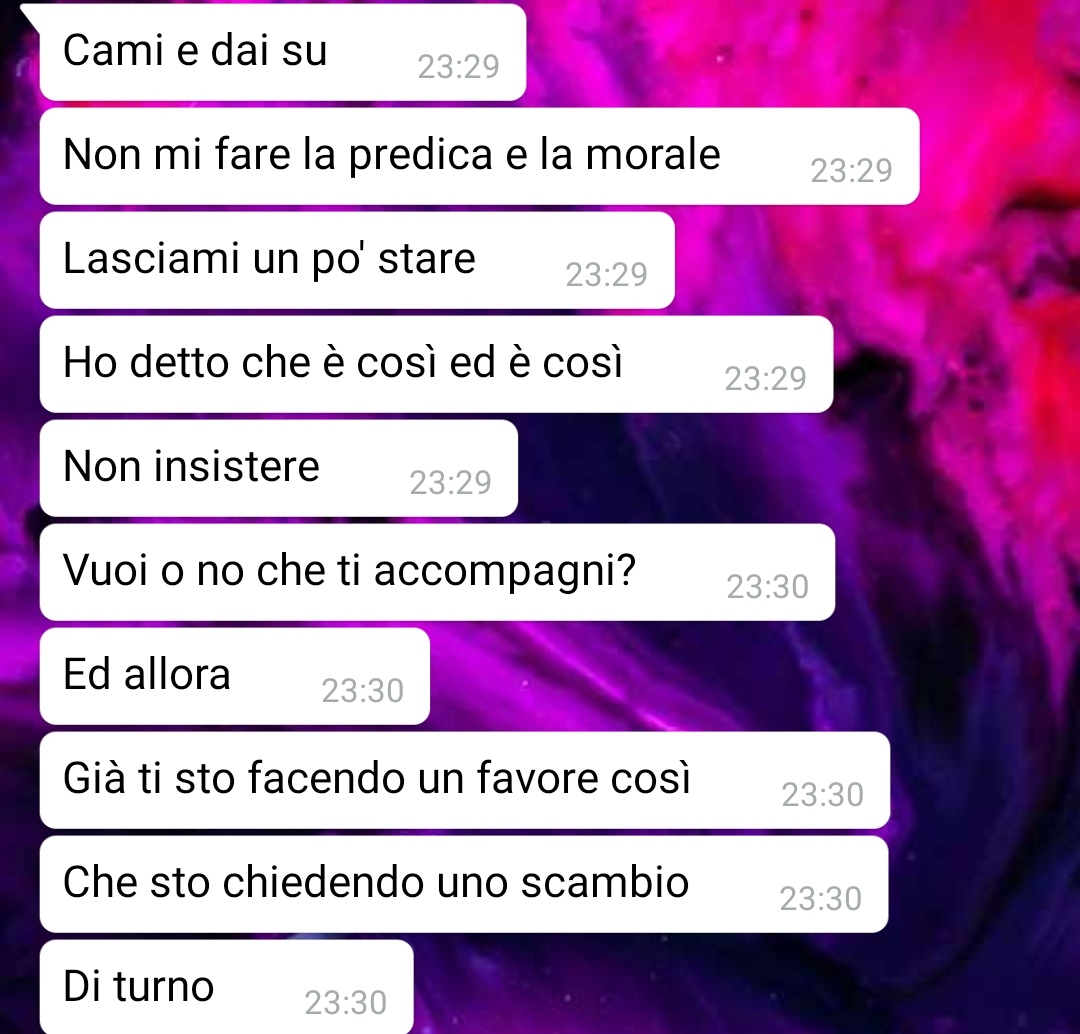 Leggi le ultime storie La decisione del Don In disaccordo Progetto di famiglia La pizzetta Divisione dei compiti La mia regina – Parte 2 Il braccio rotto Torna a casa Priorità familiari Emma Cane abbandonato I social controllati dall’ex Il bonifico segreto – Parte finale La porta a soffietto Rolex a rate Il messaggio cancellato Il grafico Un regalo Tradimenti ripetuti Il bonifico segreto