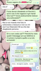 Dopo i primi attimi di sconforto, faccio la prima cosa che mi viene in mente: prendo il numero di sta st****a e le scrivo dal mio…e il resto ve lo lascio leggere ma dovete farlo fino all’ultimo screen”