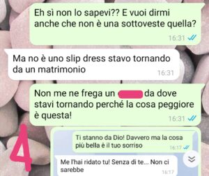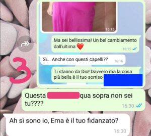 Tutto inizia quando, dopo aver controllato il cell del mio fidanzato, come ogni tanto faccio, non sempre ma saltuariamente…trovo dei messaggi scambiati con una ragazza che vi giuro mi hanno fatto venire la pelle d’oca! Non avevo mai trovato nulla di simile prima eppure stavolta c’erano foto di lei semi svestita, lui che le chiedeva insistentemente ste foto e parole e messaggi da parte di lei che erano davvero forti, parole importanti che mi hanno gettato nello sconforto.