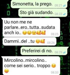 Poi, però, le cose hanno iniziato a prendere una piega strana. E più io cercavo di sviare, più lei rincarava la dose, arrivando a dirmi cose che non avrei mai immaginato di leggere da una donna che per me era tipo… la compagna di tombola di mia nonna.