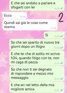 “Quando il tuo ragazzo sparisce per tre giorni senza dire nulla, ti immagini mille scenari: che abbia bisogno di tempo, che sia stressato, che stia facendo il figo col silenzio. Quello che non ti aspetti è vederlo uscire da casa della tua migliore amica. Sì, proprio lei, quella che ti chiama “sorella” un giorno sì e l’altro pure. Spoiler: non stavano guardando serie su Netflix. Quello che è successo dopo, tra scuse ridicole, pianti fuori tempo massimo e tentativi imbarazzanti di giustificarsi… beh, ve lo lasciamo leggere. Ma una cosa è certa: quando ti pugnalano così, non sanguini. Ti ghiacci. E certi ghiacci non si sciolgono più.”