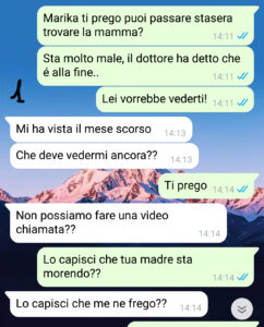 Qualche anno fa Liliana si è ammalata: io l’ho assistita per tutta la sua malattia anche perché sua figlia si è categoricamente rifiutata di fare qualsiasi cosa.