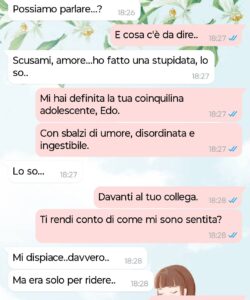 Convivo con il mio compagno, Edoardo, da un paio d’anni. Stiamo insieme da quattro. È una persona buona, davvero, ma ha un difetto che all’inizio faceva anche tenerezza: non sa mai quando smettere di scherzare. È il classico che fa ridere gli amici, che ha la battuta pronta, che sdrammatizza tutto. Anche quello che non andrebbe mai preso alla leggera.