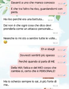 Il giorno dopo, sono andata da mia madre. E solo lì, lontana da casa, ho realizzato quante cose avevo ingoiato. Ci siamo sentiti quella sera. E finalmente abbiamo parlato, davvero parlato. Vi condivido qui sotto la nostra chat, perché nessuno dovrebbe sentirsi solo mentre costruisce una famiglia. E perché a volte, un messaggio può svegliare più di mille parole dette a voce.”