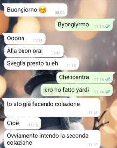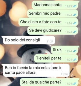 “Salve a tutti, sono Francesca e ammetto che potrei essere stata un po’ pesante con il mio ormai fu ragazzo. Perché io sono una che non ammette cose diverse rispetto a quelle cui sono abituata, ma soprattutto ho una personalità molto forte, indipendente e solare e odio le persone che sono al mio opposto che devono costringermi a essere diversa da come sono. E il mio ragazzo, Enrico, mi ha fatto vedere i proverbiali sorci verdi da sto punto di vista. Lui viene dalla Liguria, abbiamo iniziato una relazione di recentissimo e io sono una che appena qualcosa non mi convince o non funziona o non mi sta bene, allora devo tagliare subito i rapporti. Ed ecco che, dopo che un sabato sera ho deciso di passarmelo in giro a divertirmi con i miei amici e lui non ha voluto unirsi per le sue sessioni di meditazione, la mattina dopo ha ben pensato di far cadere quella goccia che fa esplodere tutto il vaso di problemi che si sono accumulati nel giro dei tre mesi che sono stata con lui. E quella goccia è una tradizione ligure che più volte ha fatto davanti a me e che io non sopporto.”
