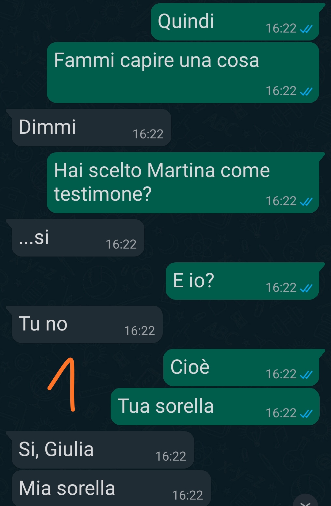 Nonostante tutto, nonostante i litigi, i silenzi, le differenze… ero convinta che sarei stata lì, accanto a lei, col vestito bello e la voce tremante, a firmare come testimone.