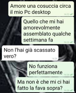 “Il mio fidanzato mi ha fatto la cresta sul pc che mi ha assemblato. Anzi peggio, che non ha gonfiato i prezzi. Ha proprio “falsificato i documenti”. Una vera truffa!
