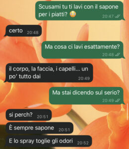 E niente… è iniziata una conversazione che non mi sarei mai aspettata nella vita. Voi che ne pensate??? Vi siete mai trovate in situazioni simili??”