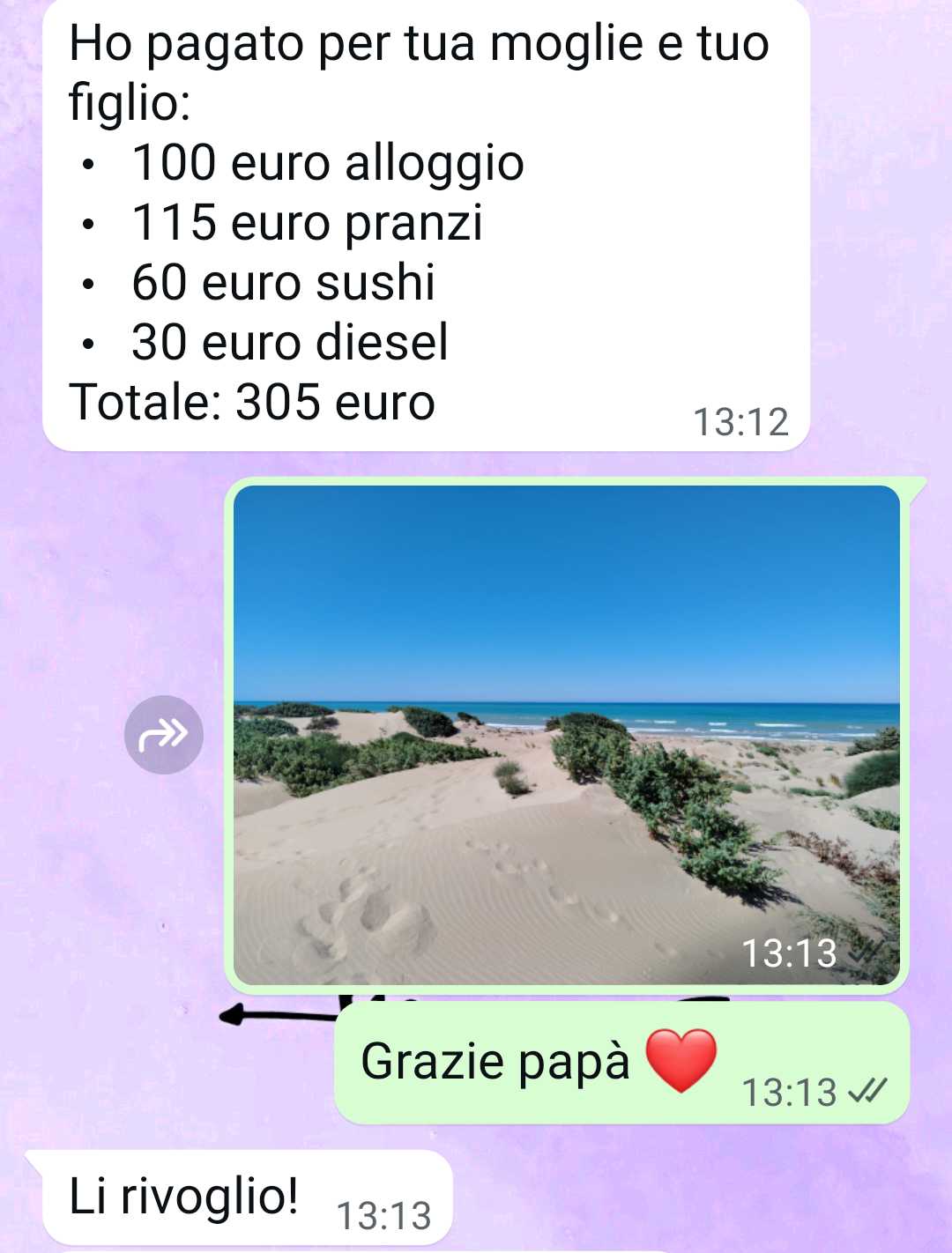 “Mio padre ha ospitato mia moglie e mio figlio nella sua villa al mare. Mi ha chiesto il conto di tutto!!