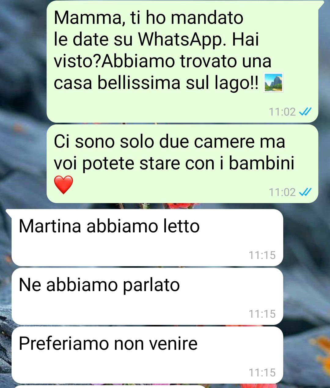 Stiamo parlando di due settimane. Non sei mesi. E poi non è che andiamo all’estero o in campeggio: è una casa enorme sul lago, con giardino, cucina attrezzata e tutto il necessario. L’abbiamo trovata proprio pensando anche a mamma e papà.