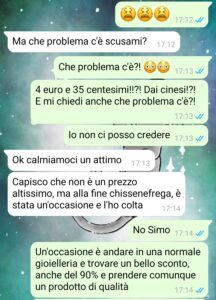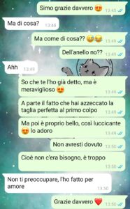 “Non sono mai stata una persona materialista, davvero. Ma penso che ogni gesto in una coppia abbia un significato, anche quelli piccoli. Un regalo, per me, non è solo un oggetto: è il pensiero, il tempo, l’attenzione che ci metti. È un modo per dire ti vedo, mi importi, sei unica. Non deve costare una fortuna, ma deve raccontarmi qualcosa. E soprattutto, deve essere vero. Non sopporto le finzioni, nemmeno quelle fatte per non farci caso o non far pesare le cose. Preferisco una verità semplice a una bugia elegante. In una relazione ci vuole sincerità, sempre. E coerenza, tra quello che si dice e quello che si fa. Non si può dire che una persona è tutto per te e poi comportarsi come se bastasse il minimo. Soprattutto quando si tratta di cose che, anche se sembrano sciocche, toccano corde profonde. Forse sarò sensibile io. O forse alcune cose, anche se piccole, parlano più forte di mille parole. Stavo con Simone già da tempo e inaspettatamente mi aveva regalato un anello che mi aveva dato, molto solennemente, in un’occasione speciale. E all’inizio ero folgorata, ma poi ho scoperto la verità.”