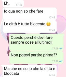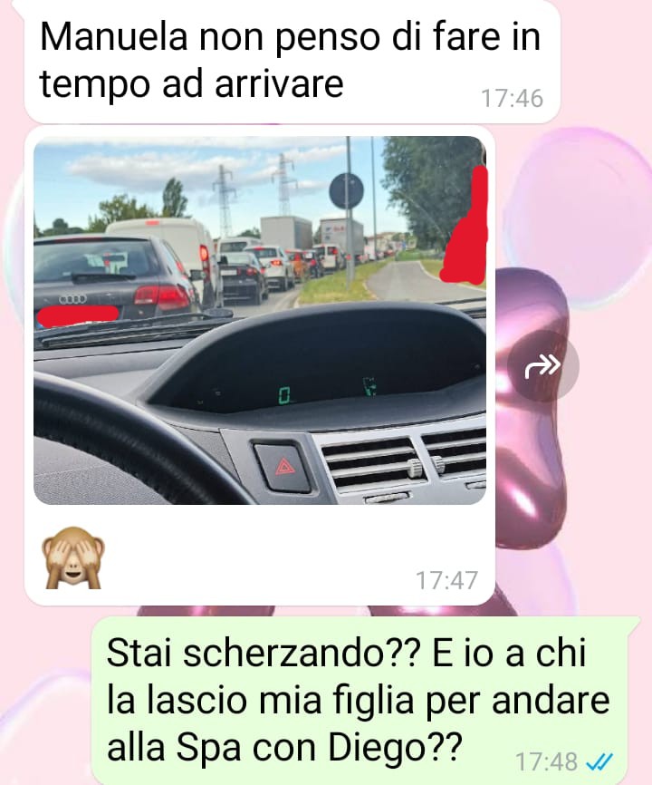 La discussione è nata proprio quando Alessia è rimasta incastrata nel traffico. Il problema? Lei sa benissimo che in questo periodo turistico la città è sempre bloccata, ma vuole negare di aver fatto tardi apposta solo per avere una scusa per liquidare le sue responsabilità verso di me. Come glielo spiego che nella vita non si può solo avere, ma anche dare??”