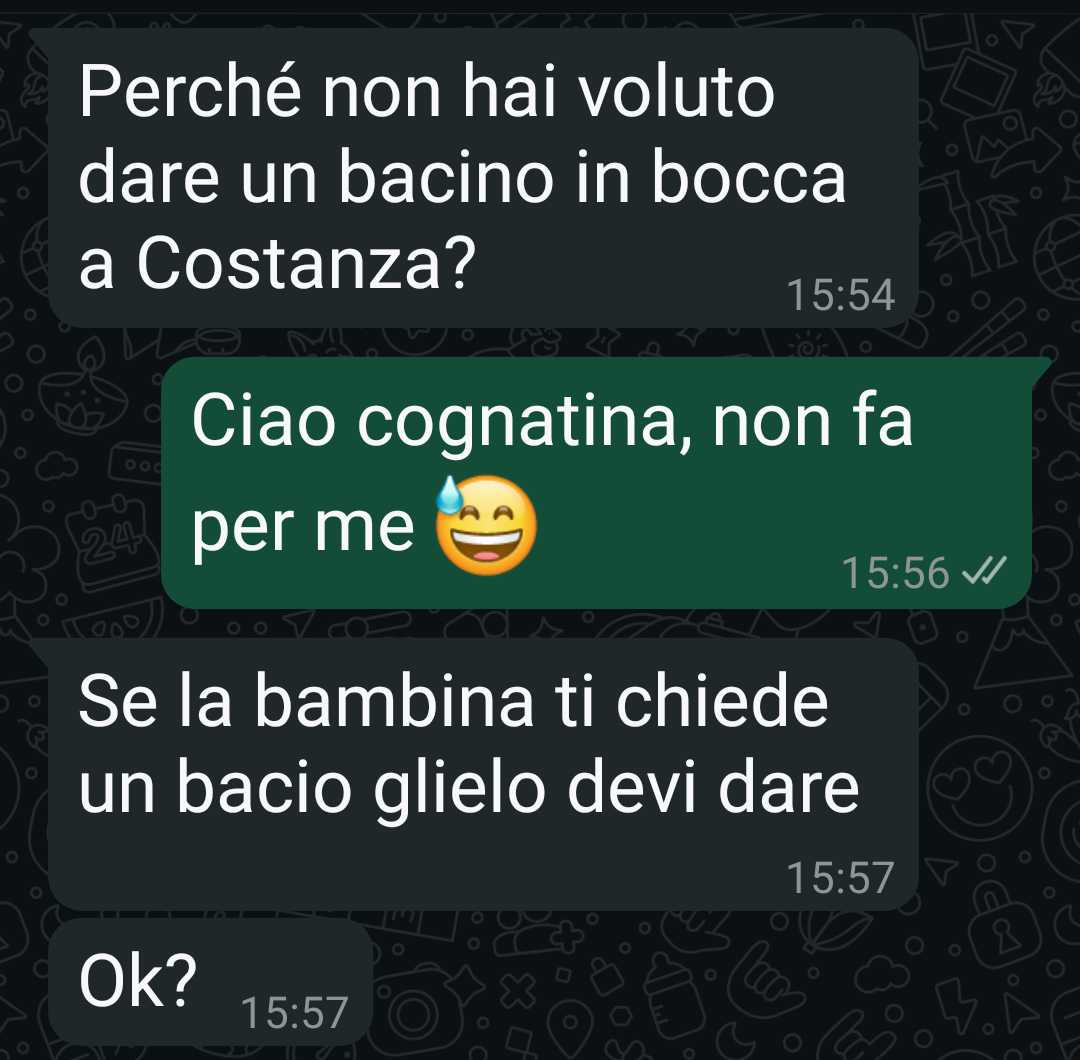 cioè io sono la zia e nemmeno di sangue, devo darle bacini in bocca?? La bambina me li chiede e io mi sottraggo sempre. Questa cosa la fa piangere e mi dispiace ma io non mi sento a mio agio.
