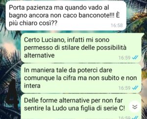 Io e la Ludo però abbiamo poi chiesto ai genitori di lei, un contributo economico anche da parte loro. Perché ci sembra giusto ed equo.