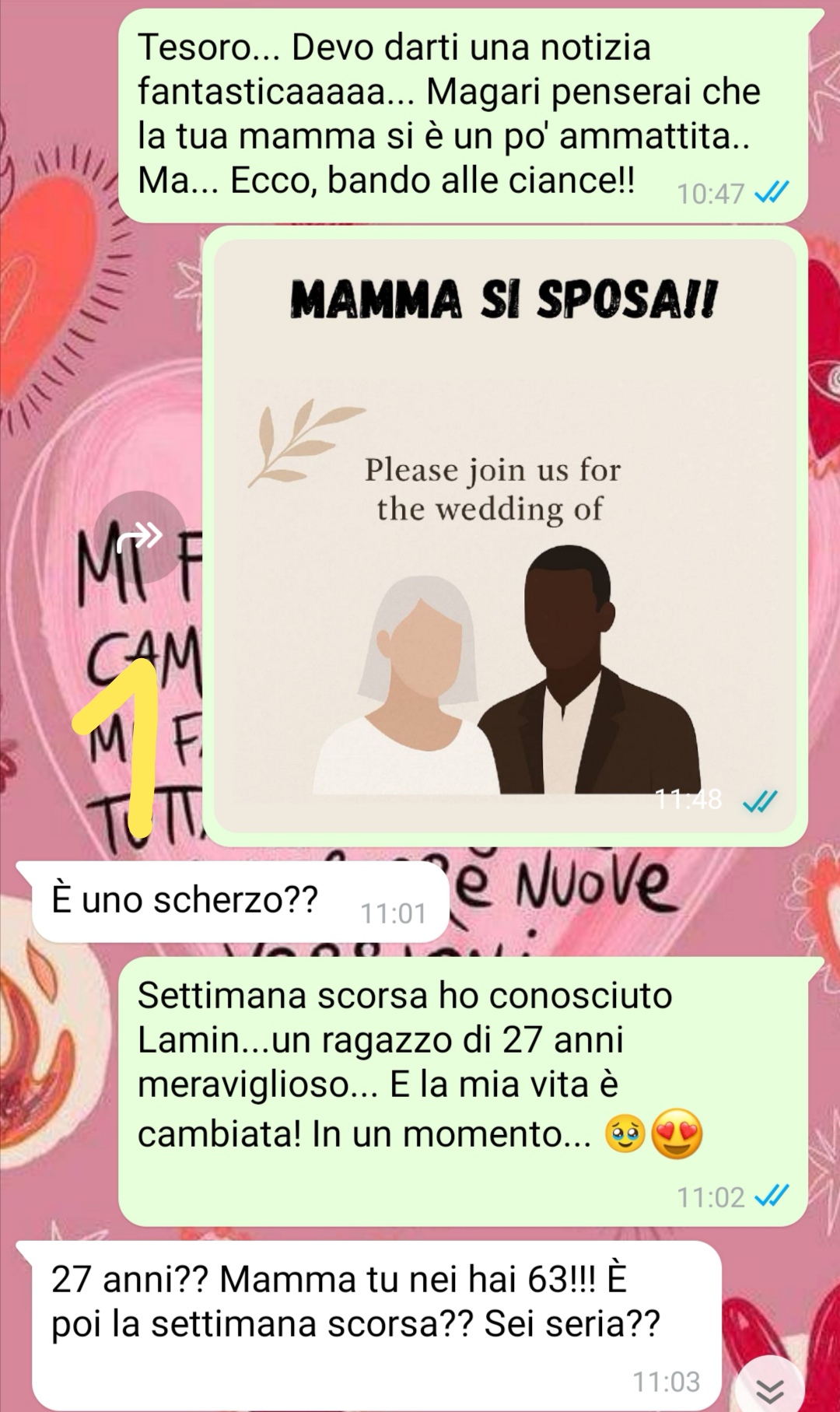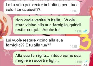 E dato che in Italia ho una figlia, ho pensato di scriverle e condividere con lei subito la gioia e la notizia. Ma lei… purtroppo vi lascio leggere cosa è successo. Ora ragazzi miei carissimi che leggete e commentate io ho bisogno di voi. Come posso fermare mia figlia che sta facendo una guerra alla mia felicità???
