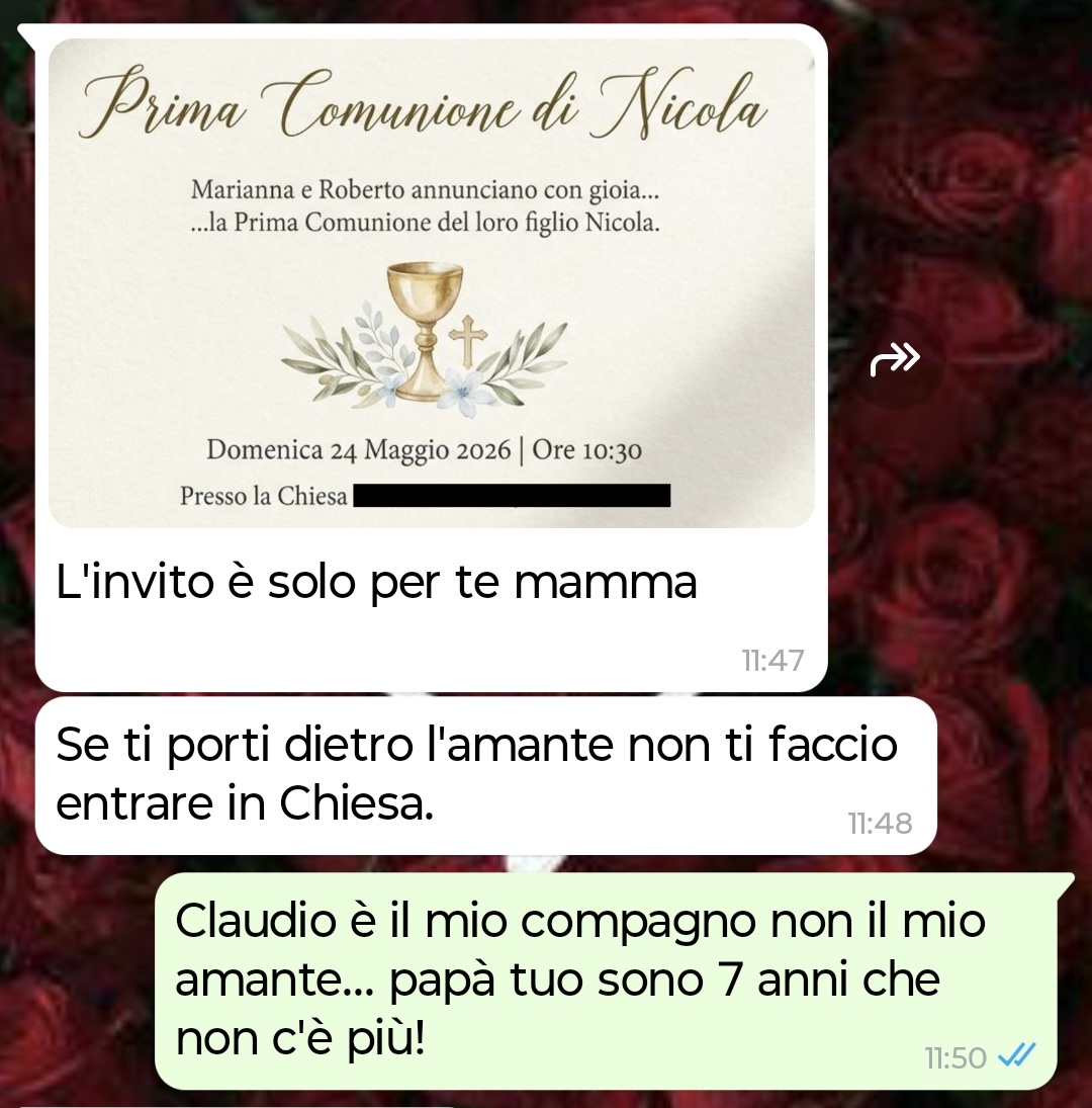 Stamattina mi ha mandato l’invito per la Prima Comunione di mio nipote Nicola. Un momento che doveva essere solo gioia pura. Ma insieme all’invito, Marianna ha allegato una condizione che mi ha spezzata e che forse ha messo un punto definitivo al nostro rapporto…”