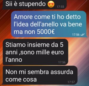 “5k per un anello?? La mia ragazza mi chiede continuamente soldi.