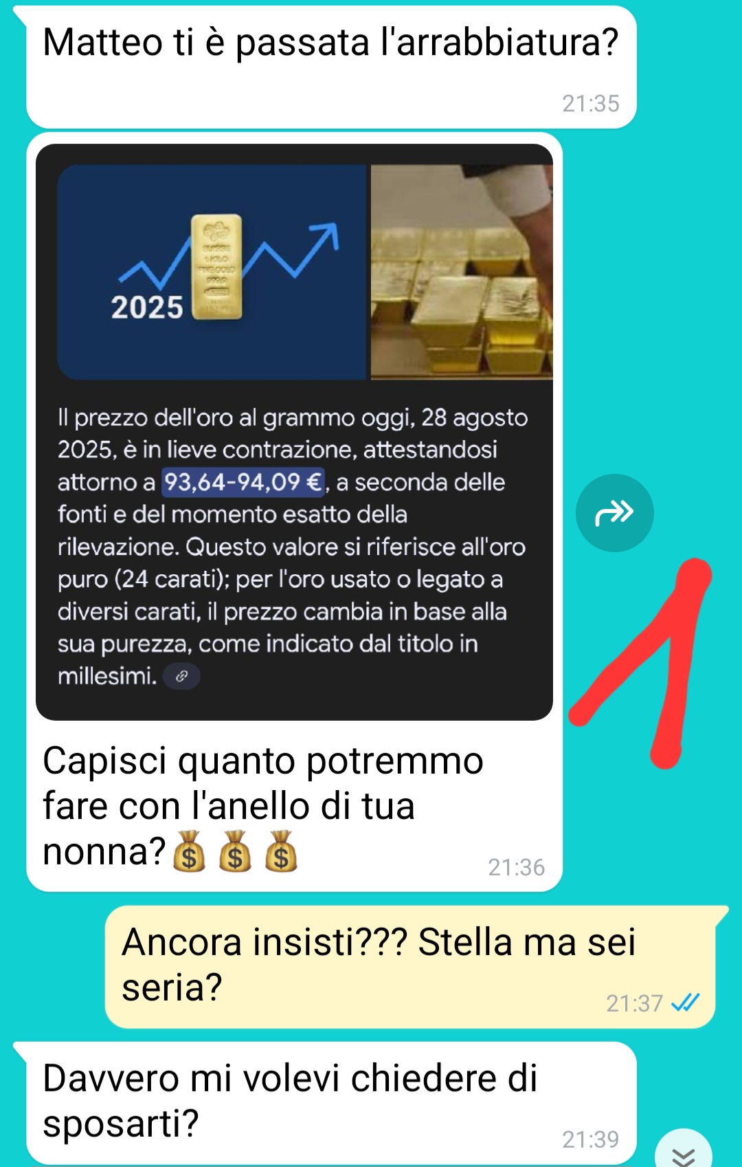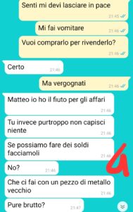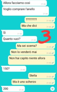 “Ho cacciato di casa Stella appena sono tornato, la sera in cui mi ha detto di voler vendere l’anello di mia nonna. Forse è stato un gesto eccessivo o forse no, ma io non riuscivo proprio a guardarla negli occhi. Mancare di rispetto a mia nonna, che è stata tutta la mia famiglia, era troppo da sopportare.  Ho passato giorni terribili, perché Stella mi ha deluso tantissimo. Non mi sono fatto sentire e neanche lei, fino a questa sera. È successo tutto due ore fa. Stella mi ha scritto. Quando ho visto la notifica col suo nome ho pensato : ” Oh, finalmente delle scuse, avrà capito di aver sbagliato “. E invece no ragazzi, pensavo di non poter restare più deluso di così.  Sono rimasto senza parole…Come si può stare tanto tempo con qualcuno senza capire chi è veramente? Le persone mi fanno molta paura.”