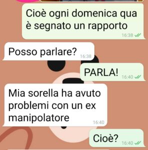 Perché il mio compagno deve tenere il conto dei cicli di sua sorella??? Perché?? Io non voglio fare la sessista. Un fratello è come una sorella, credo. Ma un fratello certe cose le fa per una sorella?? Non lo so. È normale che un fratello faccia questo tipo di cortesia alla sorella?? Che la aiuti in questo modo così femminile?? Come ci si aiuterebbe tra amiche o tra sorelle??