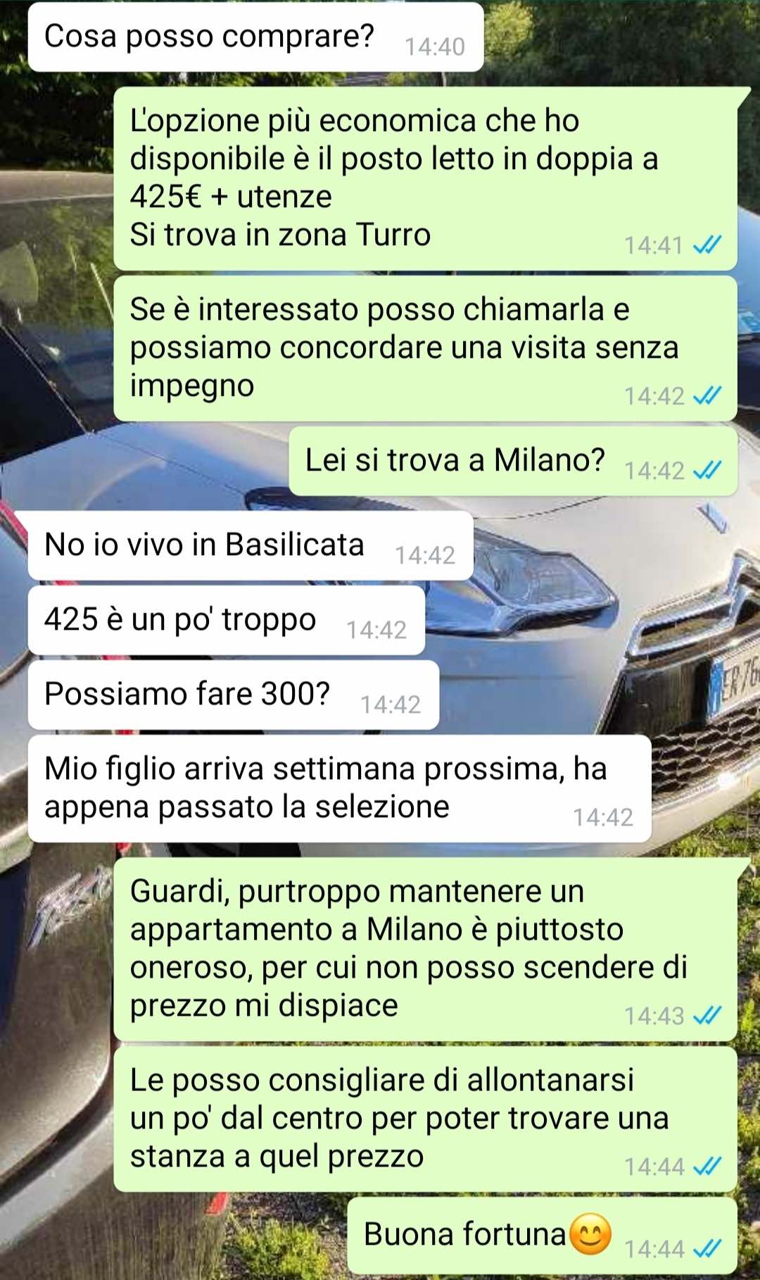 Vi invio una delle ultime conversazioni che mi è capitata di fare con un signore interessato ad affittare una stanza per il figlio, studente in un’università di Milano.