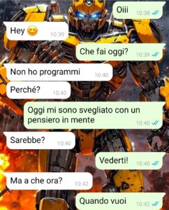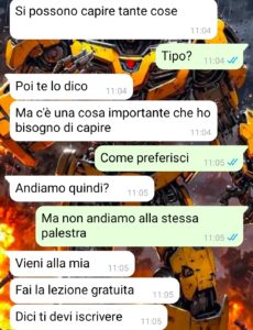 “Ciao, sono Antonio e posso dire di aver sperimentato l’appuntamento più strano e brutto che possa esserci in assoluto. Perché gli appuntamenti dovrebbero essere degli incontri sinceri, distesi e rilassanti dove si dovrebbe sperimentare il giusto grado di sintonia e capire se piace l’altra persona, stare insieme e condividere passioni comuni. Ho conosciuto Valentina su una chat, non ci eravamo ancora mai visti ma avevamo parlato moltissimo e una passione comune era quella per l’attività fisica, una cosa che a me di certo non diverte, ma la faccio per stare bene con me stesso e tenermi in forma. Fatto sta che lei mi ha proposto di fare una cosa davvero particolare come primo appuntamento, ma quando poi è arrivato il momento di dirle la mia e comunicarle i miei sentimenti, positivi o negativi, lei ha ben pensato di sganciare la bomba e darmi colpe che non ho e dirmi cose che non mi aspettavo di sentirmi mai dire in vita mia. Queste cose le potete leggere nella chat che vi sto per mandare.”