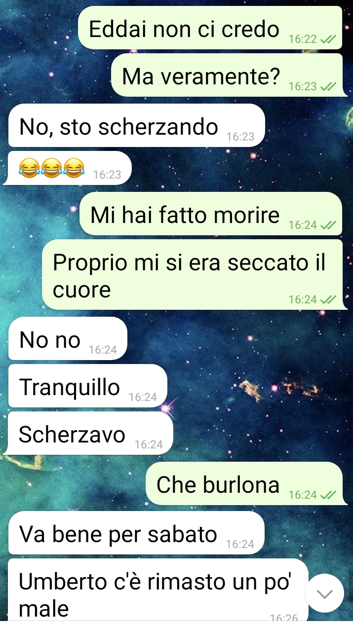 Leggi le ultime storie Il dilemma della sorella Un viaggio vano Bugia bianca Disorganizzazione La consumazione Outfit per il matrimonio Lui è fuggito dalla finestra La videochiamata Il tradito seriale La colf Sparizione Non è come sembra Serie B Genitori disastrosi La classifica Colletta Un matrimonio in piccolo Disavventure di un gatto Le mie inquiline Il mistero dei followers scomparsi