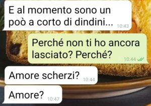 Leggi le ultime storie La proposta di matrimonio sbagliata La sua decisione Ti prego mentimi Rotoli e tradimenti Cose personali Il completino Lo snack della discordia Billo il gallo L’educazione alimentare L’andrologo e il cacciatore Piatto con sorpresa Non ti amo più Mario l’idraulico Matrimonio complicato Senza preavviso Il periodo di prova Un servizio anti tradimento Una decisione difficile La yes friend Tradimento astrale