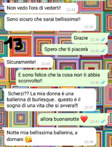 “Beh con il consenso del mio futuro marito (ci sposiamo a giugno!) allego gli screenshot della conversazione avvenuta ormai un anno fa! :)”