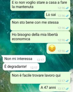 “ORA VI STO MANDANDO LA STORIA DA CASA, HO DOVUTO LASCIATO IL LAVORO PER ACCONTENTARE MIO MARITO, E SONO DEPRESSA PERCHE’ HO PERSO LA MIA INDIPENDENZA ECONOMICA…”