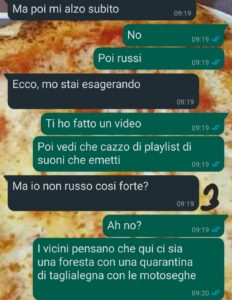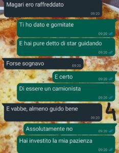 “Convivere con Paolo significa scoprire che l’amore non è fatto solo di carezze e colazioni a letto, ma anche di rumori, ronfate e vibrazioni infernali. Lui sostiene che mettere sette sveglie a distanza di cinque minuti sia “un metodo graduale per svegliarsi meglio”. Io lo chiamo “tortura sonora a puntate”. Ogni notte è una battaglia: russa, si gira, si impossessa del mio cuscino e delle coperte come se stesse conquistando territori. Quando non russa, parla nel sonno. Quando non parla, produce altri suoni… strategicamente peggiori.