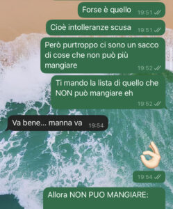 Per fortuna FORSE abbiamo capito qual è il problema, o almeno da dove viene… cioè è almeno una delle cause. Ancora non ci hanno dato risposte certe. Non è una cosa leggera, cambia parecchie abitudini, e non sarà facile… e non è che una se lo inventa per moda o per fare la persona difficile.