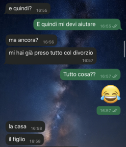 E soprattutto ciao a tutte le madri divorziate che ogni giorno si fanno in quattro (o in mille) e che magari, come me, stanno pure subendo i ricattini post-divorzio dagli ex mariti 🙃…