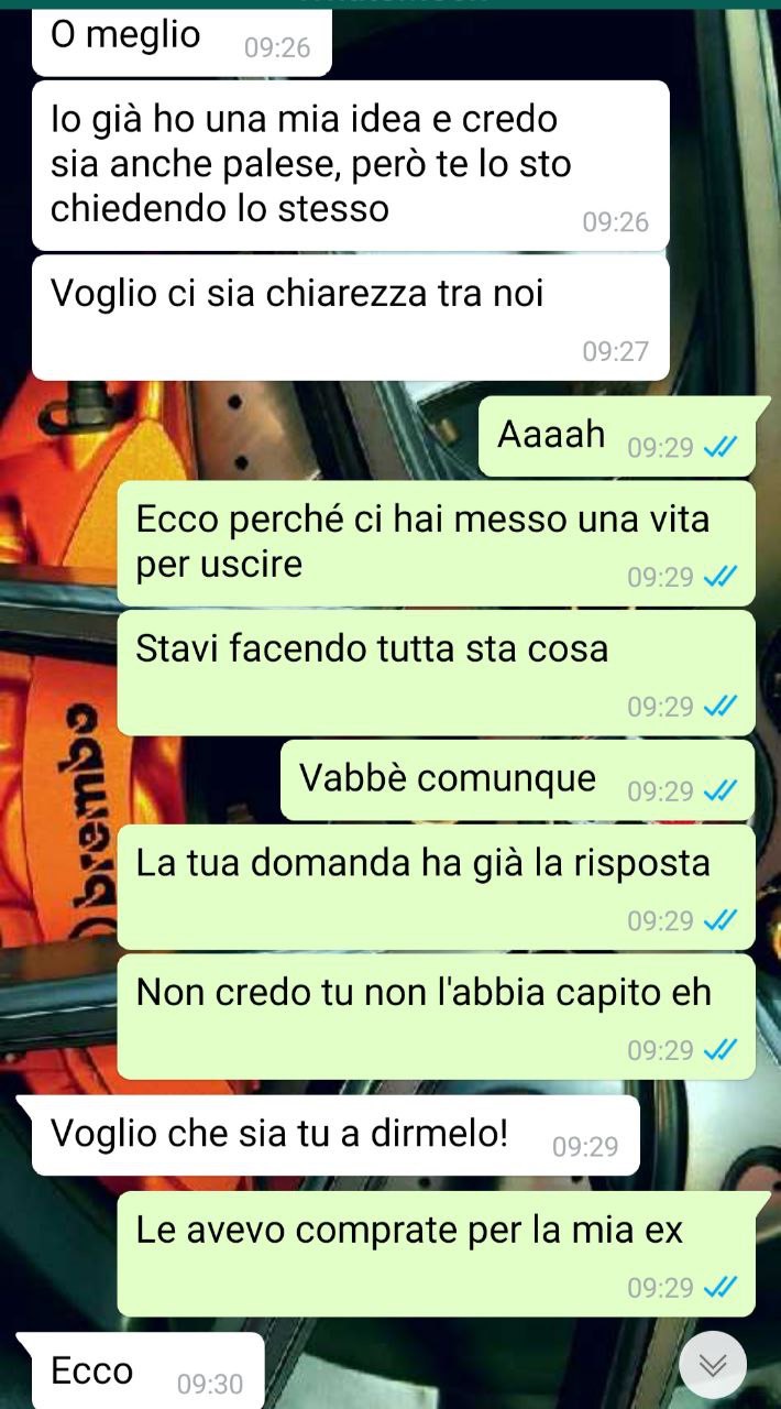 Giusto per darvi un’idea, era stata a casa mia, il giorno dopo sinceramente la vedevo un po’ strana, ma la sto imparando a conoscere quindi non volevo essere “invadente”. Poi alla fine ha sputato il rospo, infatti è stata lei stessa a scrivermi e dirmi cosa le fosse preso. La parola a voi.”
