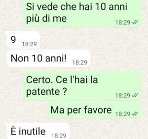 Vi scrivo per mostrarvi una delle tante chat in cui mi deride, mi umilia, mi fa sentire inferiore. Non ha nessuna delicatezza, urla sempre e fa la sbruffona.