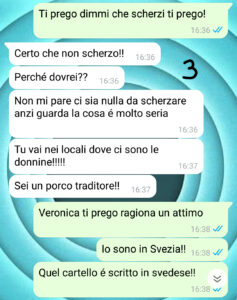 “Ciao SpunteBlu, mi chiamo Francesco e ho una ragazza che si chiama Veronica. Veronica è simpatica e davvero molto carina ma ha un difetto: è gelosa in una maniera impressionante! Lei vede ovunque la possibilità di essere tradita, anzi non solo la possibilità ma proprio le prove del tradimento!! E se non ci sono prove?!? Se le crea! Per fortuna poi quando si riesce a disinnescarla si quieta.. fino alla prossima volta!! La cosa strana però è che Veronica non capisce che anche io possa essere geloso, anzi! Più peggiora la sua di gelosia, più lei ha comportamenti che potrebbero scatenare la mia di gelosia!! Insomma io devo vivere con l’ansia del suo sospetto, stando sempre a giustificare tutto, e lei invece si sente libera di fare tutto quello che le pare.. Un giorno mi ha fatto una scenata perché sul pacchetto del pane la commessa aveva scritto il mio nome e ho dovuto faticare per farle capire che semplicemente lo avevo prenotato per telefono!! Ma la sera stessa lei mi ha detto che è stata un’ora al telefono con il suo ex!! Insomma il suo atteggiamento non mi sembra molto giusto francamente: è come se lei avesse due facce, una per gli altri e una per se stessa!! Ad esempio alcuni giorni fa…”