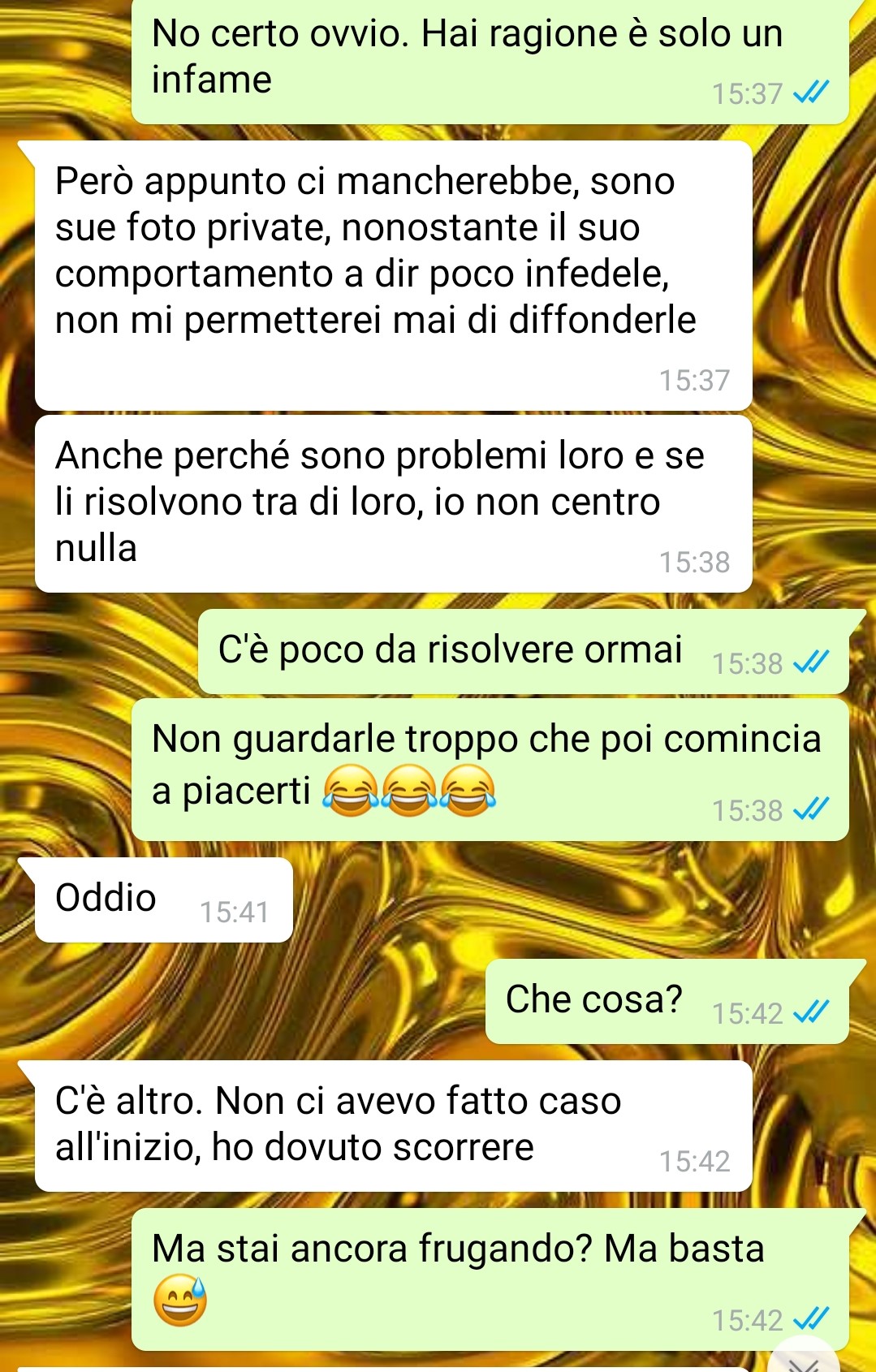 Ovviamente può succedere e lui non ha colpa ma non mi faceva minimamente piacere che lui guardasse e avesse quelle foto, e non era neanche il massimo nei confronti di lei. Perciò gli ho chiesto di eliminarle immediatamente e la sua reazione è stata a dir poco inaspettata”