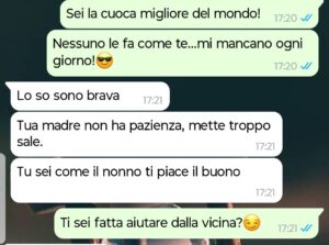 Per mesi le ho risposto in modo vago, cercando di spiegarle che non ero lì, che lei non era a casa. Poi ho capito che stavo cercando di curare qualcosa che non poteva guarire, invece di godermi un’ultima possibilità. Così ho iniziato a mentire. Ho iniziato a scattare foto a lasagne surgelate o a piatti pronti, spacciandoli per i suoi, solo per farle chiudere gli occhi con il sorriso di chi ha ancora qualcuno di cui prendersi cura. Questa chat è il nostro rito, il nostro scrivimi quando arrivi quotidiano, prima che la notte si porti via tutto di nuovo.”