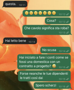 Vi lascio leggere la chat… e ditemi voi se sono io che esagero o se davvero ho sposato la persona sbagliata.