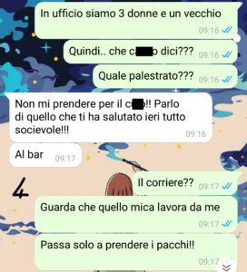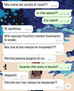 “Ciao a tutti i lettori di Spunte Blu, mi chiamo Sabrina e vi mando questi screen perché ho bisogno di condividere con voi il livello di delirio da gelosia che ha raggiunto mio marito.
