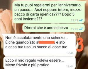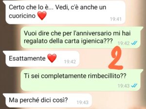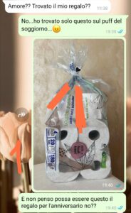 Ma lui ci teneva ad anticipare un po’ i festeggiamenti…così, io rientro dal lavoro la sera, lui era appena andato via…mi chiama e mi dice che al mio rientro troverò una sorpresa speciale. Io sono emozionatissima… chissà cosa sarà, mi dico…mi faccio mille idee ma quando arrivo in casa ecco diciamo che scopro di non essermi avvicinata a nessuna di quelle… leggete il primo screen e poi tutta la storia, grazie e scoprirete anche voi cosa ho ricevuto “