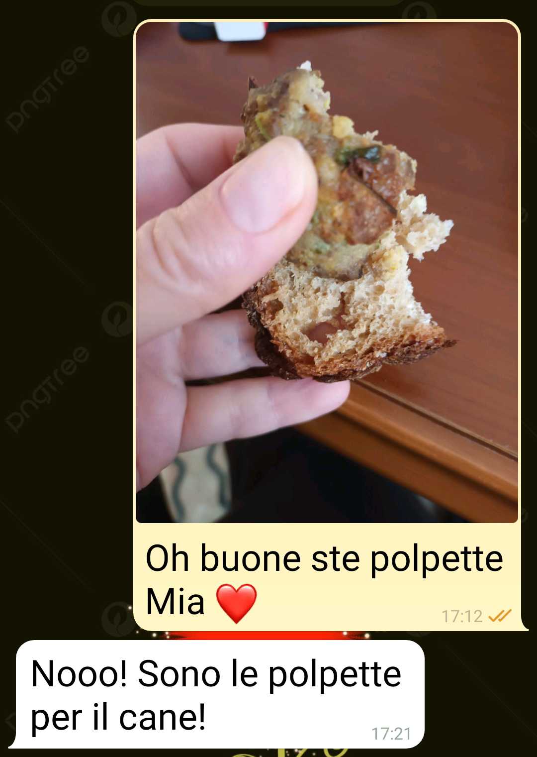 “Ciao Spunte. La mia compagna Mia ha fatto delle polpette per il cane e io le ho mangiate. È successo un casino allucinante!